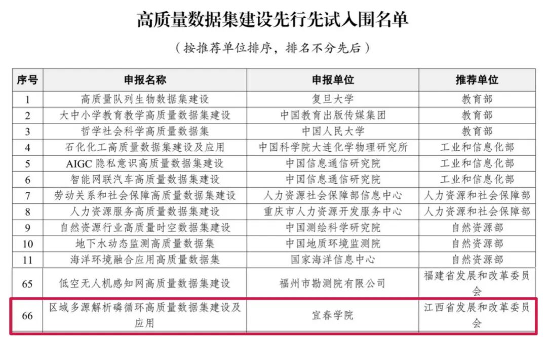 8月28日,2025中国国际大数据产业博览会“高质量数据集”主题交流活动在贵阳举行。会上发布了高质量数据集建设先行先试项目名单,宜春学院陈清清教师团队申报的《区域多源解析磷循环高质量数据集建设及应用》成功入选。