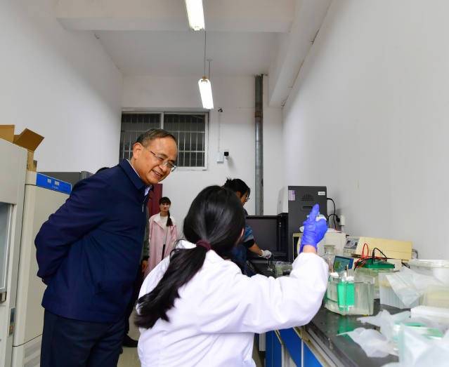 调研期间,李国金实地考察了农学基地的作物培育与技术推广情况,走访了各科研实验室(中心),详细了解仪器设备配置、科研项目进展和团队建设成效,并与相关专业负责人围绕学科建设、科研创新与成果转化等内容进行了深入交流。