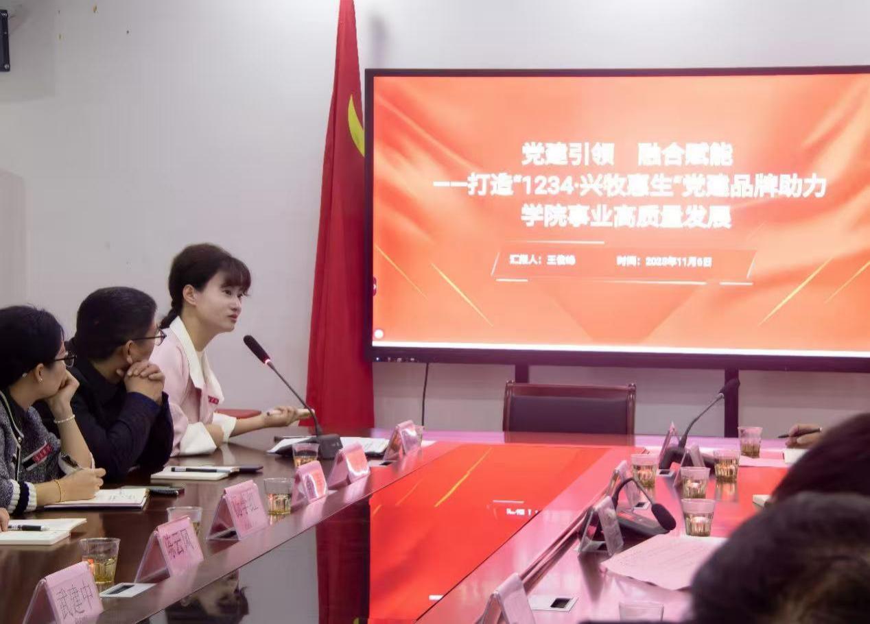 院党委书记王俊峰围绕“党建引领,融合赋能”作专题汇报,系统阐述了以高质量党建引领事业发展的总体思路,重点介绍了“1234兴牧惠生”党建品牌的创建理念、核心内涵与实施体系。她表示,学院将持续借鉴学校党建特色与其他高校先进经验,进一步凝练品牌特色,细化实施路径,推动党建与业务工作深度融合。