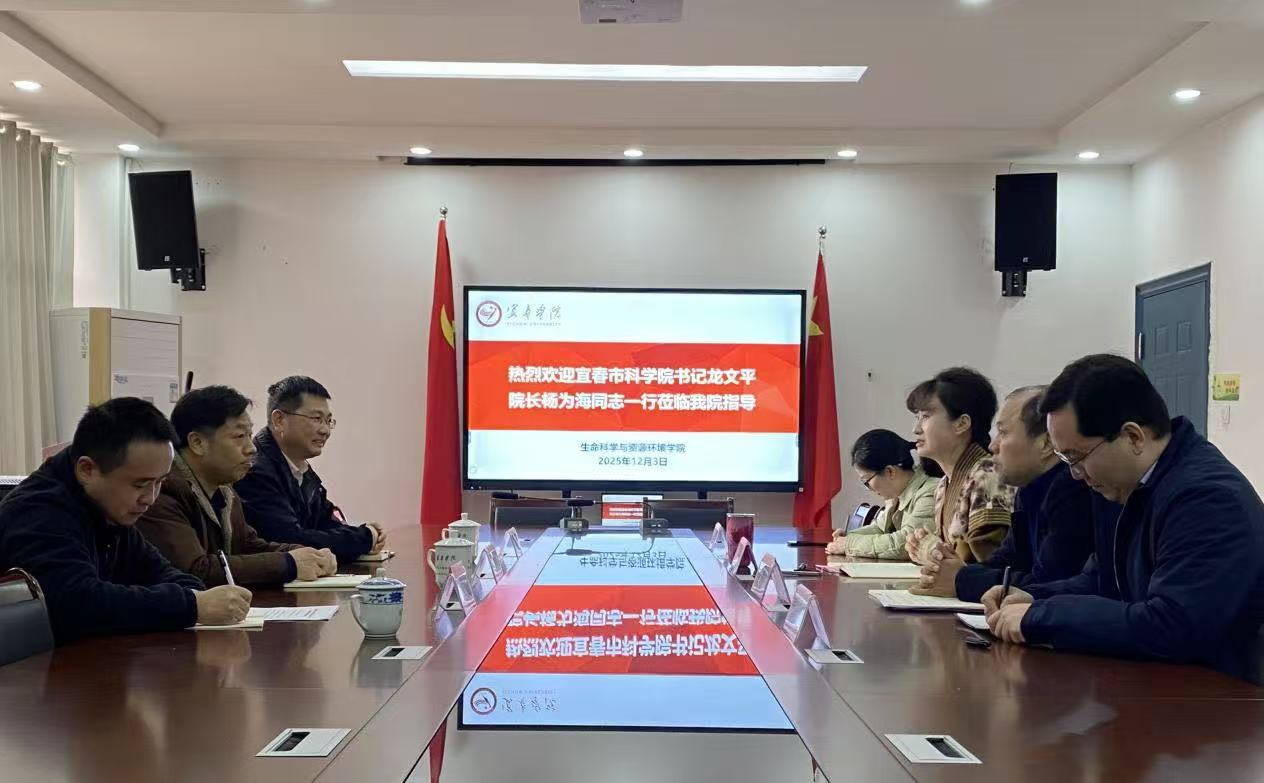 12月3日上午,宜春市科学院书记龙文平,院长杨为海一行莅临生命科学与资源环境学院指导交流,学院党政班子对专家们的到来表示热烈欢迎与诚挚感谢。