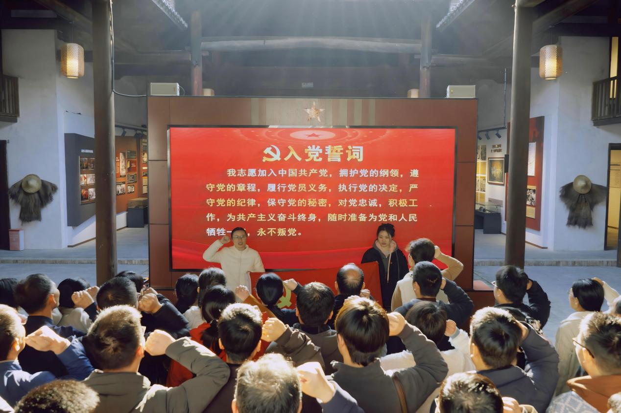 活动首站抵达社树村红一方面军革命活动旧址。全体党员驻足参观,透过斑驳的历史痕迹,深切感受革命先辈艰苦奋斗、英勇无畏的光辉历程。随后,队伍前往三星村,在庄严肃穆的革命烈士纪念碑前,怀着无比崇敬的心情列队肃立。在学院党委书记王俊峰同志的带领下,全体党员重温入党誓词,誓言铿锵,表达了继承先烈遗志、坚守初心使命的坚定决心。