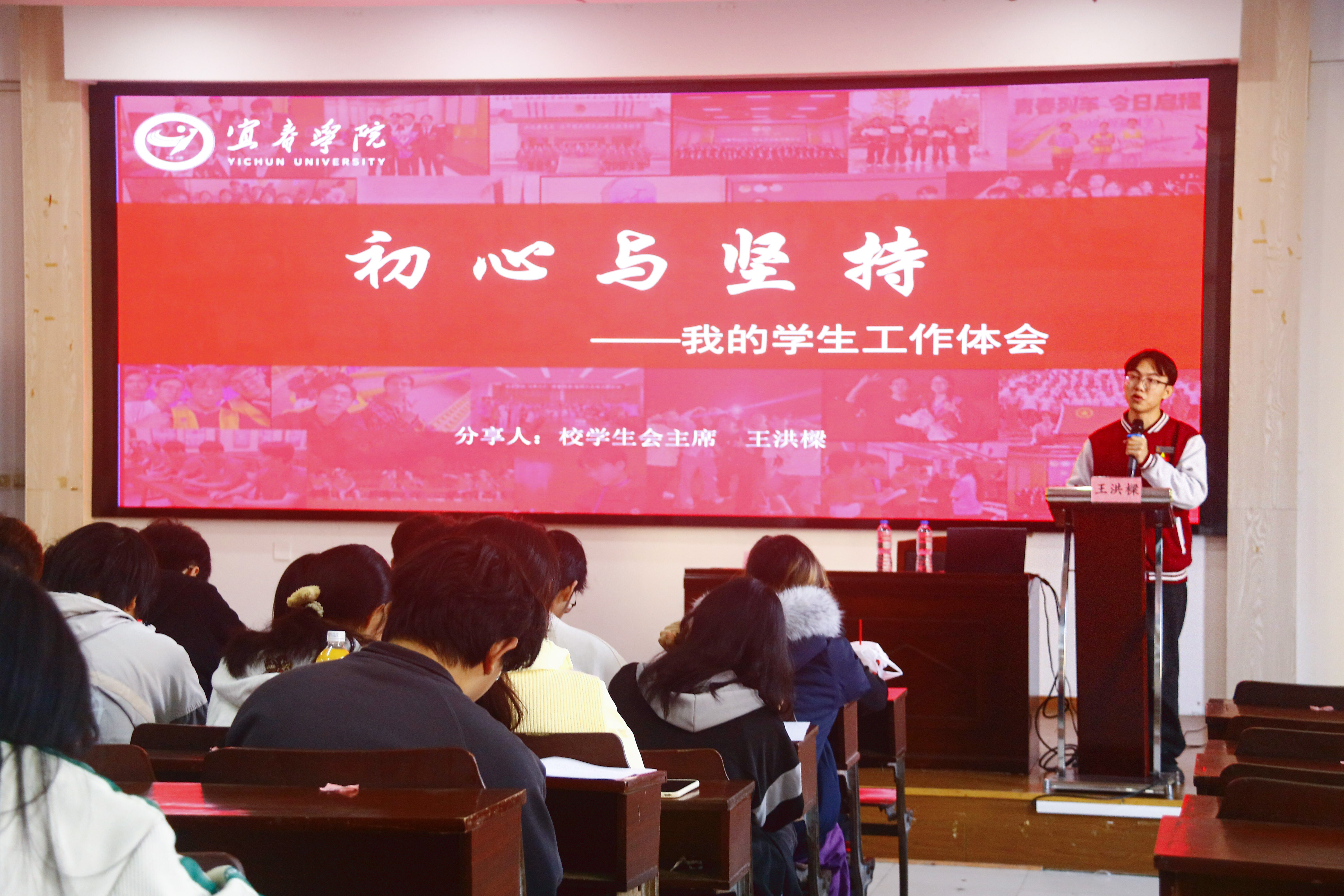 在随后的座谈分享会上,校学生会主席团成员潘朝舟、王洪樑两位同学围绕“学生工作的初心与坚持”与在场学员进行交流分享。他们结合自身从学生会工作人员到校学生会主席团成员的成长历程,分享了在学生工作中的收获与感悟。围绕不同发展阶段,他们总结出“平台锻炼—团队攻坚—统筹担当”的成长路径,鼓励学员们在坚持中提升自我,在协作中凝聚力量。同时,他们还结合自身经验,就如何平衡学业与学生工作提供了务实建议,强调合理规划、高效执行的重要性,促进二者协同并进。