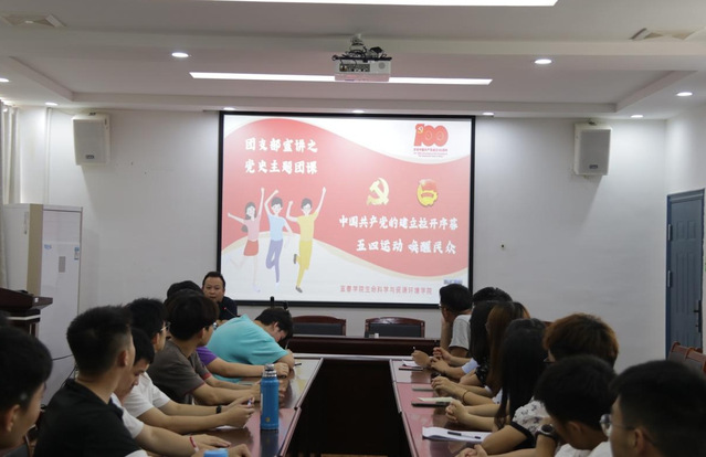 为庆祝中国共产党成立100周年和五四运动102周年,重温中国共产党从成立到发展壮大的伟大光辉历程。6月4日下午,生科学院于逸夫科技楼三楼院会议室召开党史学习教育主题团课,生科学院学生事务办公室(团委)主任汤林海出席本次团课,19环境科学班全体同学参加。
