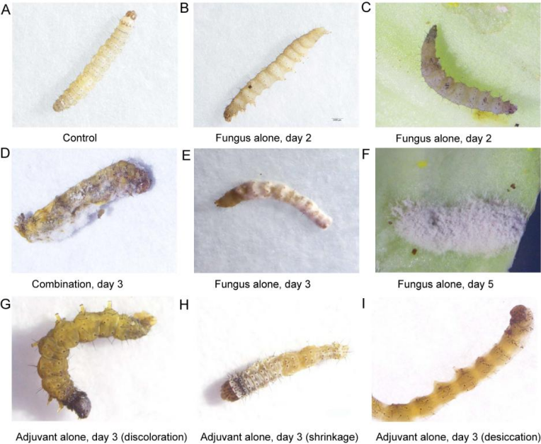 不同处理下小菜蛾幼虫的症状